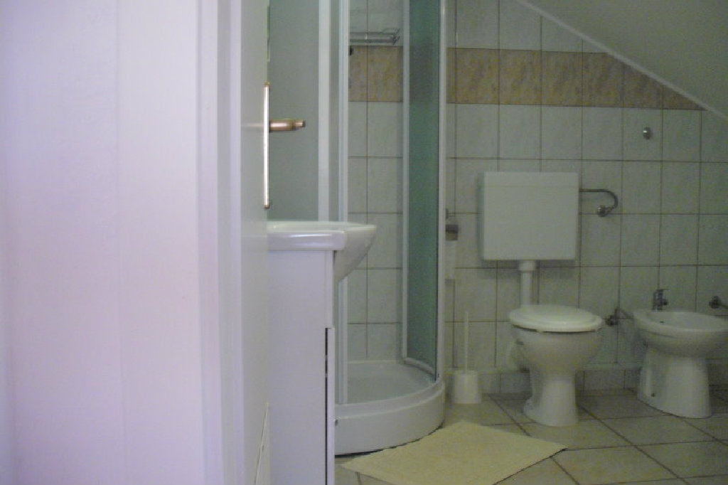 The apartment, located on the floor of the house, has 2 bedrooms, living room with sofa bed, kitchen, bathroom with shower.