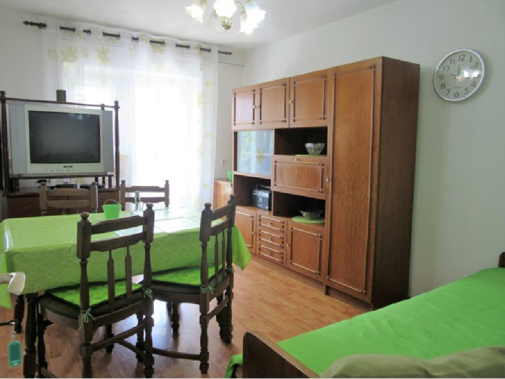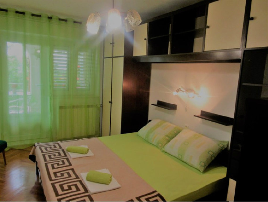 Apartman s jednom sobom sa bračnim ležajem i pomoćni ležaj u dnevnom boravku.