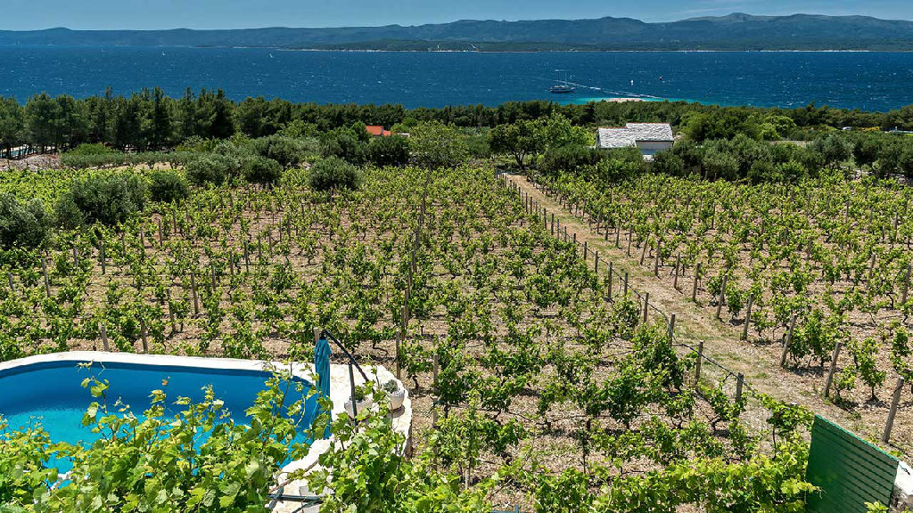Ferienhaus in Bol, auf der Insel Brač, 200 Meter vom berühmten Strand Zlatni Rat entfernt, mit privatem Pool, wunderschönem Meerblick.