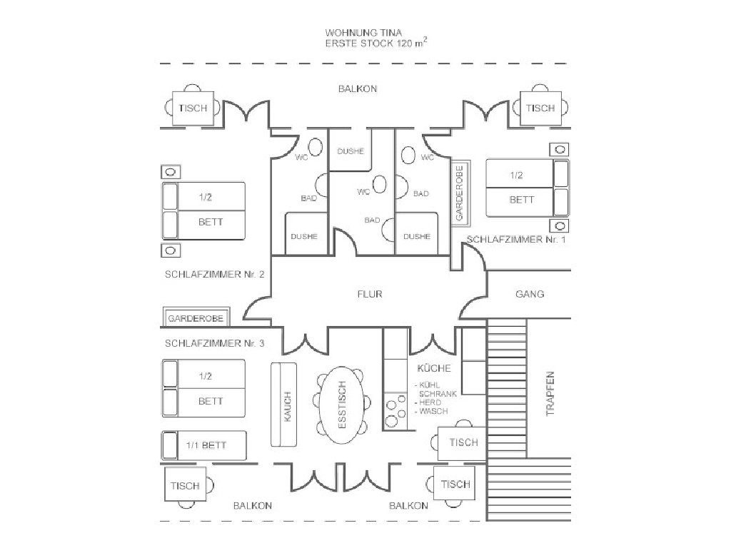 für beide Wohnungen als ganze Haus mit einer Kapazität von 12 + 6 Betten oder maximal bis zu 18 Personen.
