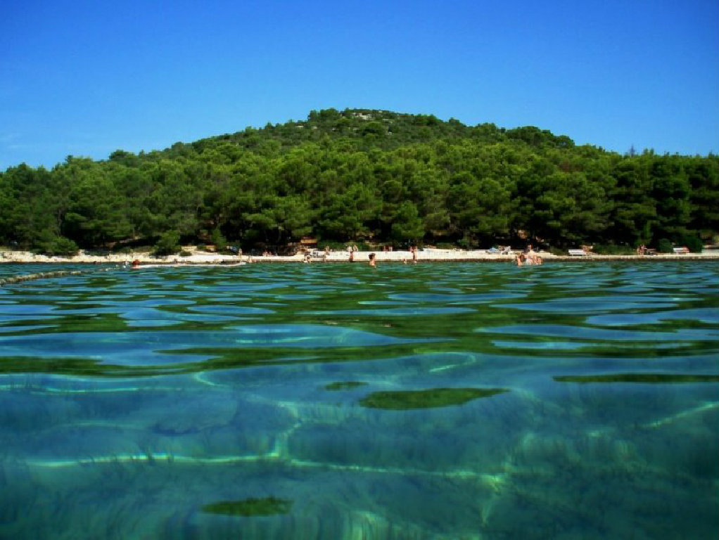 Strand Jelenica - FKK-Strand in der Nähe der Bucht Sabuša. Es ist umgeben von zahlreichen Olivenbäumen. Der Strand ist in 25 Minuten vom Zentrum von Kukljica zu Fuß zu erreichen. Der Strand ist sandig - Kies, ohne Inhalt. Außer Jelenica gibt es einen FKK-Strand Mala Sabuša.
