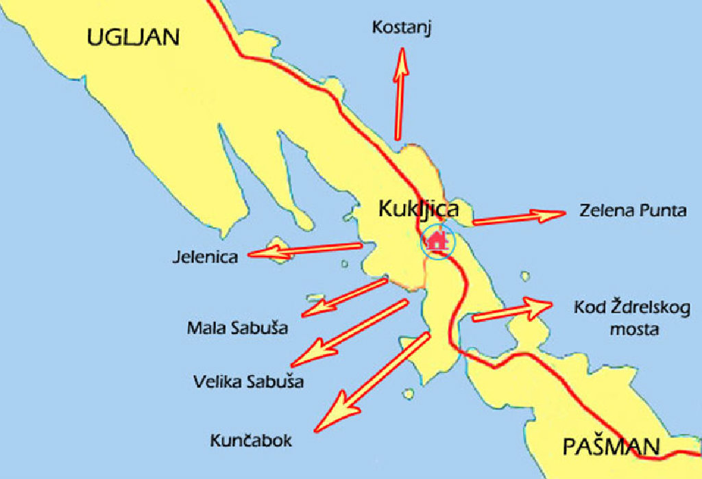 Kukljica ist ein malerisches Touristen- und Fischerdorf im Südosten der Insel Ugljan, der sich an den Nachbahrinsel Pasman anbindet. Vielfalt des touristischen Angebots, die Schönheit der Landschaft mit dichten Pinienwäldern, sandigen und steinigen Stränden am Ufer des kristallklaren Meeres, ausgestattete Hafen in einer abgeschirmten natürlichen Bucht und eine großen Auswahl an Unterkünften in privaten Wohnungen und Zimmern, und in dem Touristenort "Green punta", bieten Möglichkeiten für idealen Urlaub.